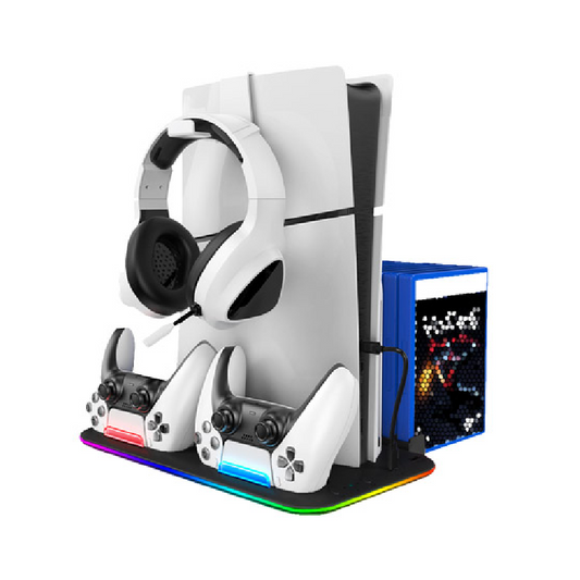 DOBE TP5-3532D Multi-Function Disc Holder & Console Cooling & Dual Controller Charging Dock For PS5 Fat / PS5 Slim / PS5 Pro (White)