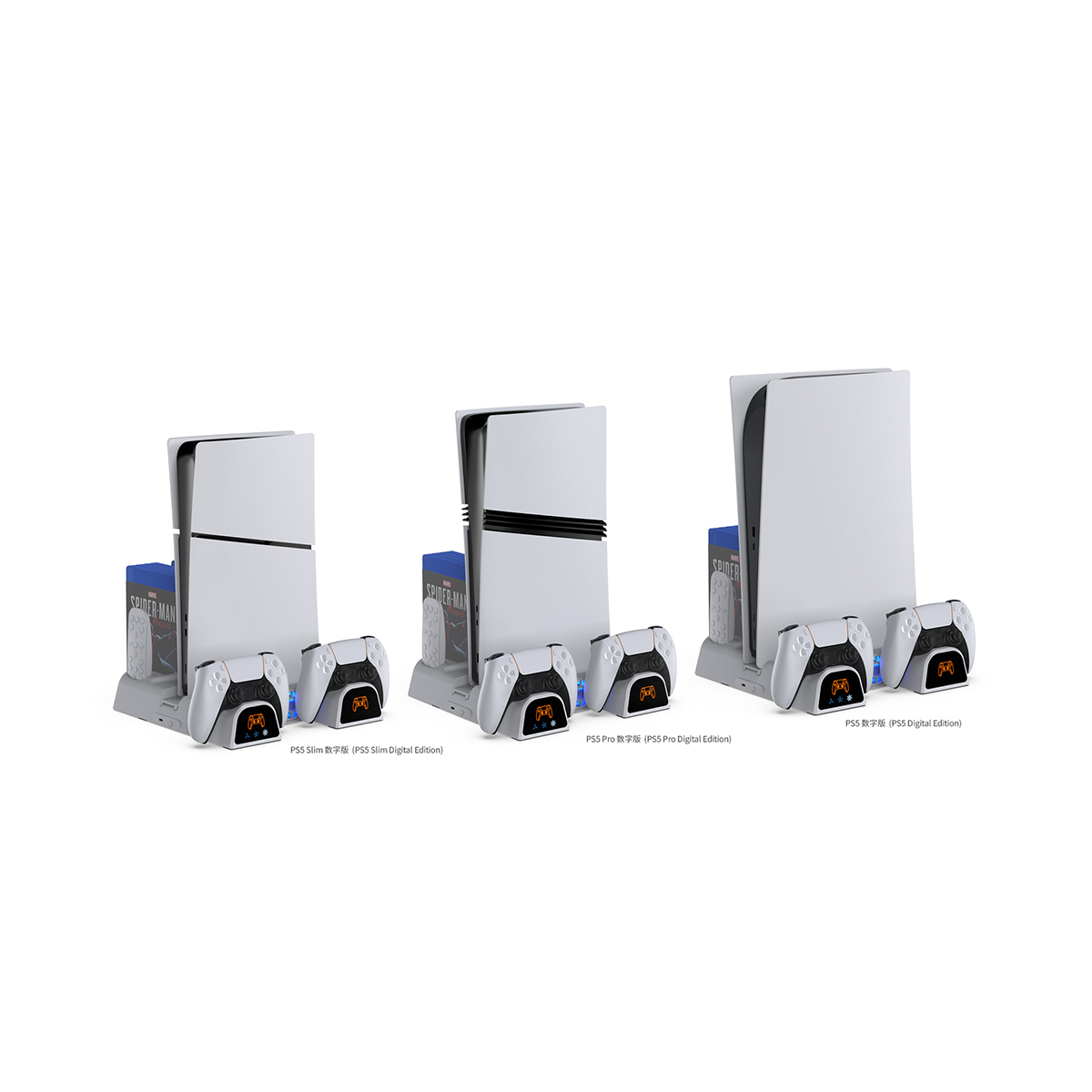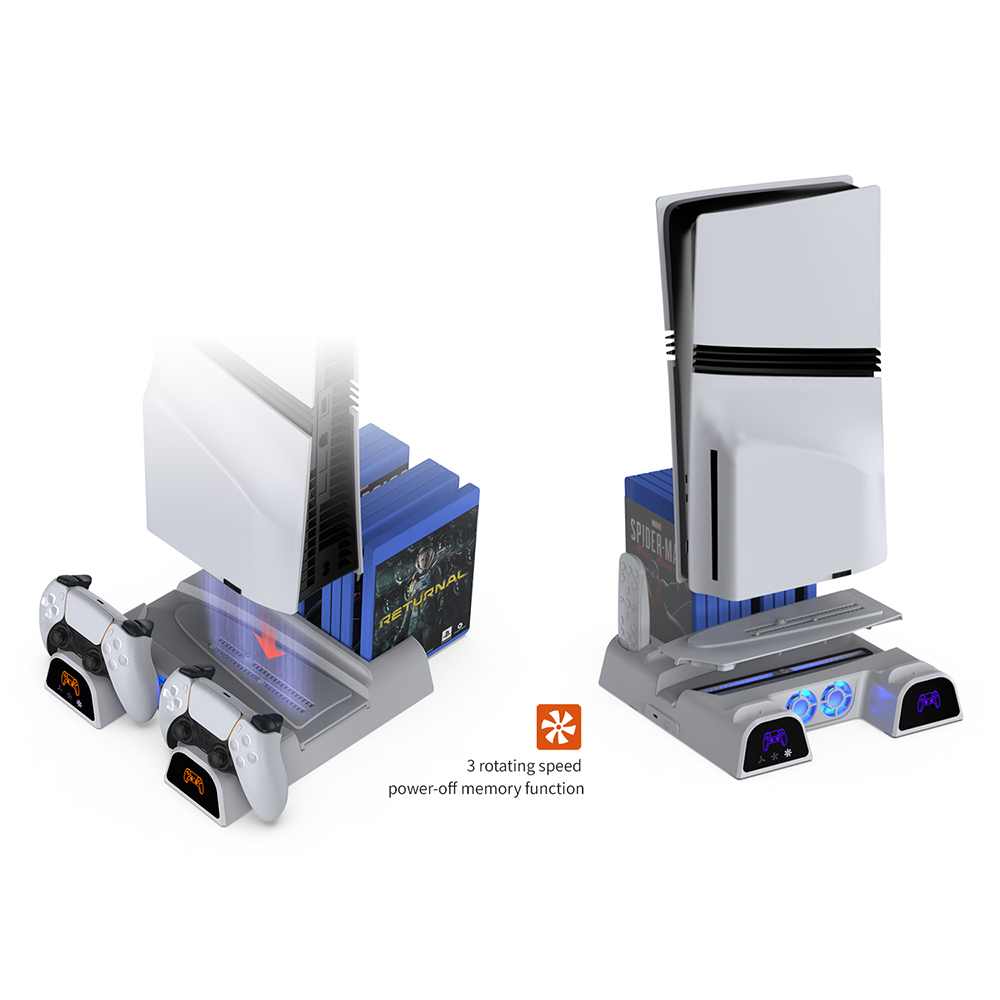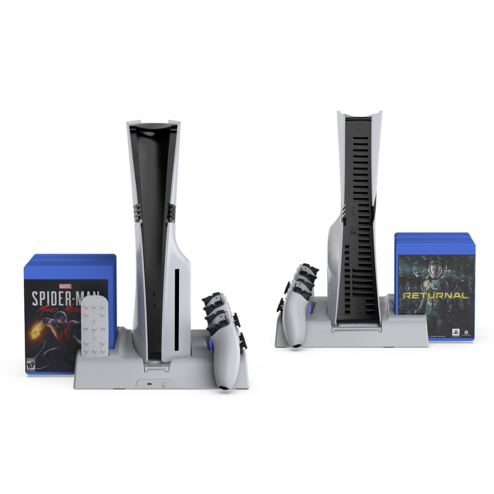 DOBE TP5-3532D Multi-Function Disc Holder & Console Cooling & Dual Controller Charging Dock For PS5 Fat / PS5 Slim / PS5 Pro (White)
