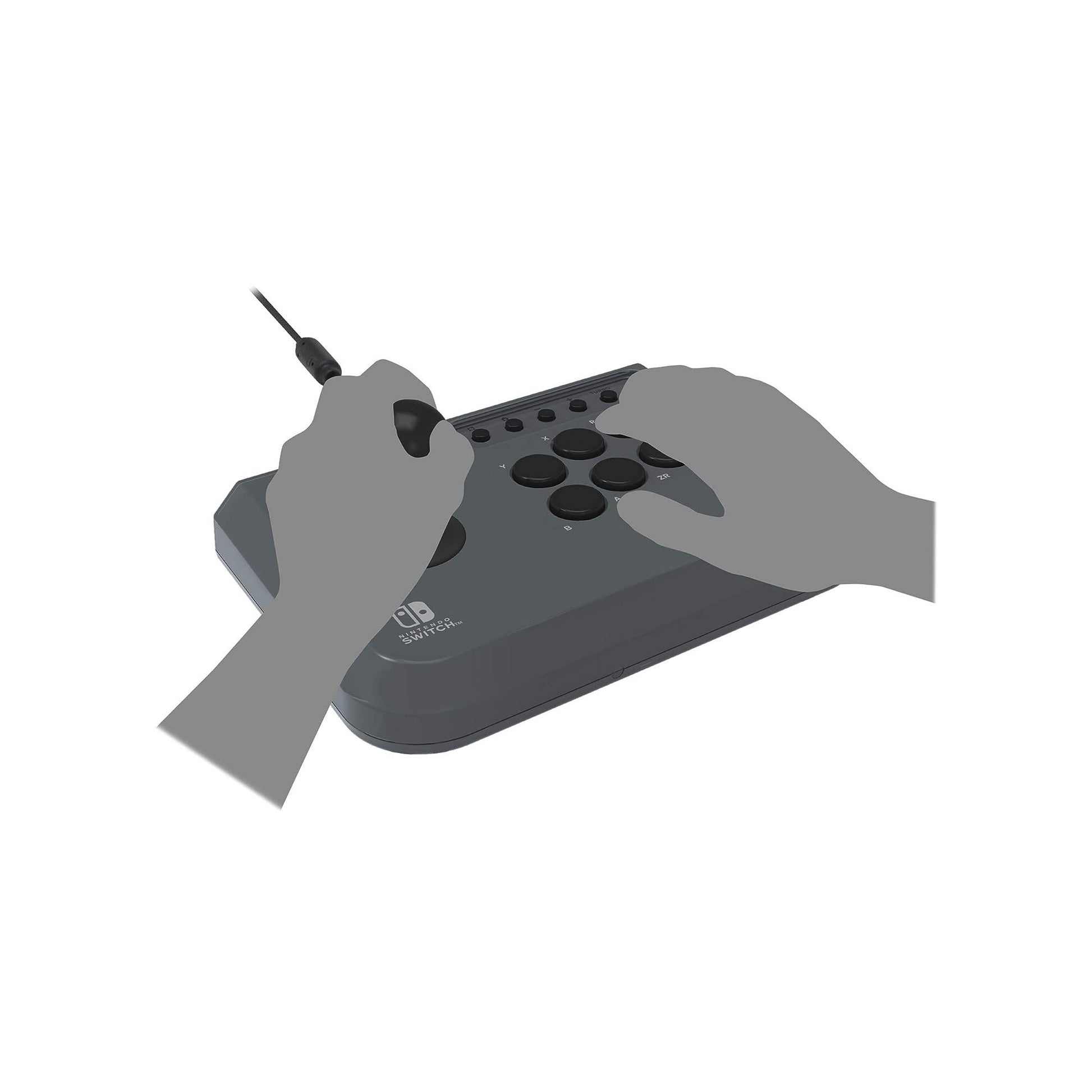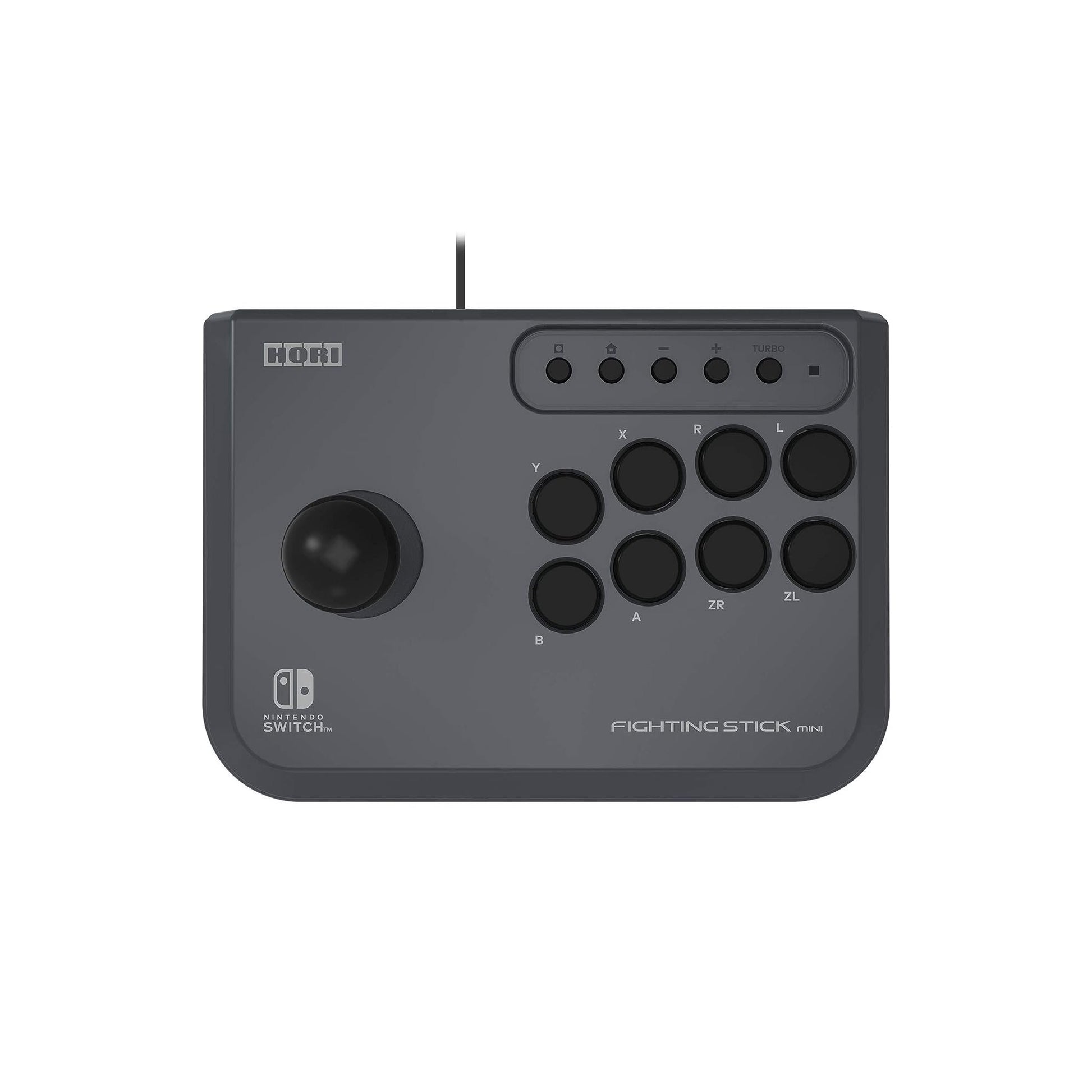 HORI introduces the Fighting Stick Mini for Nintendo Switch, a NEW way to play all of your favorite arcade classics and fighting games. It features a full 8-button layout and a proper micro switch-activated joystick, yet is small enough to easily store and transport (product is approximately 8” x 6”). Despite its small size, the Fighting Stick Mini is surprisingly comfortable with ample room to rest your wrists, and the rubberized feet grip firmly to smooth surfaces for stability. This wired controller features a long cable, turbo, capture button, and is also PC compatible. Perfect for fighting games, arcade style games, and much more! Officially licensed by Nintendo.