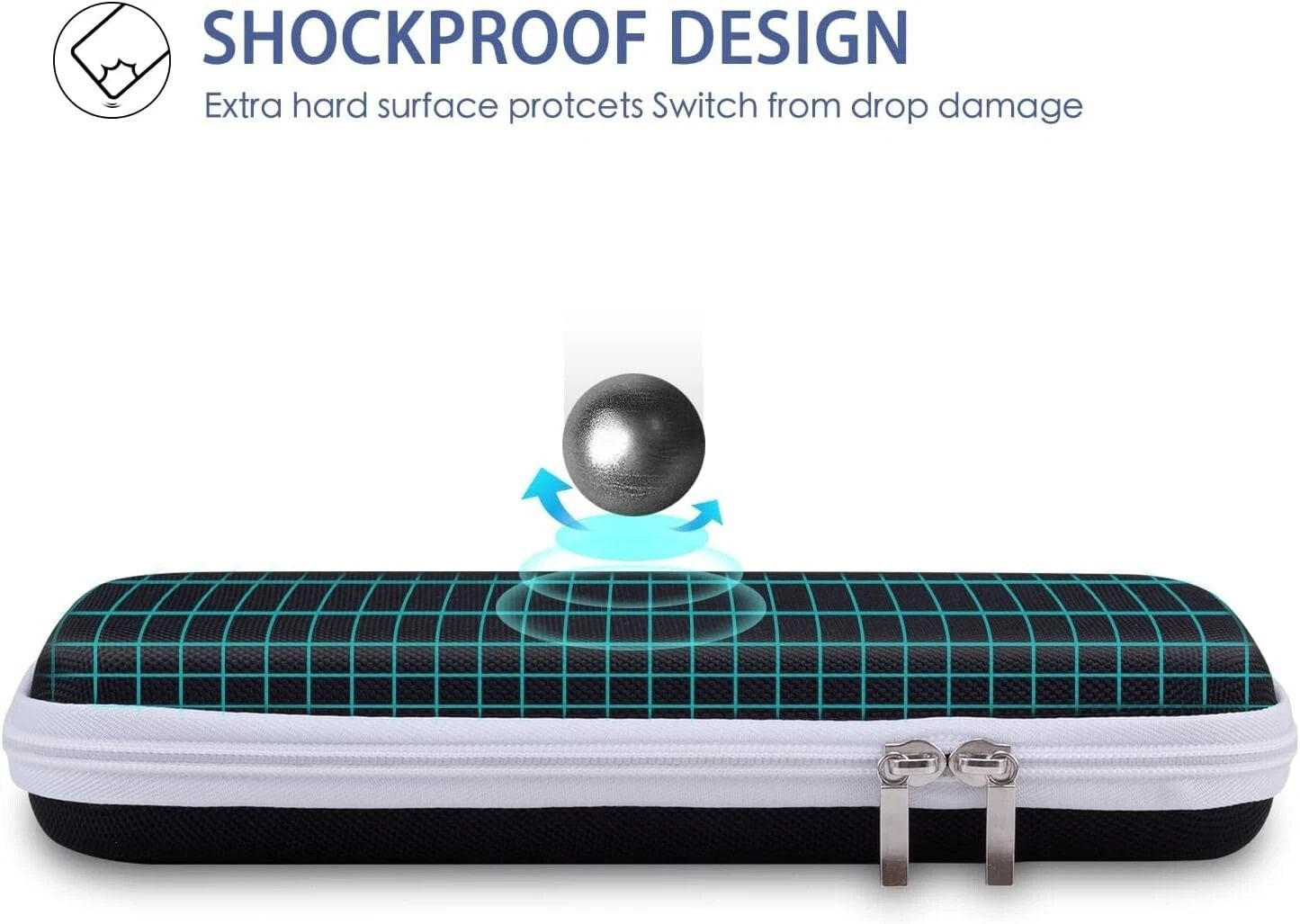 Nintendo Switch Slim Hard Carry Pouch For Nintendo Switch V1 / V2 / OLED (Black with White Zipper)