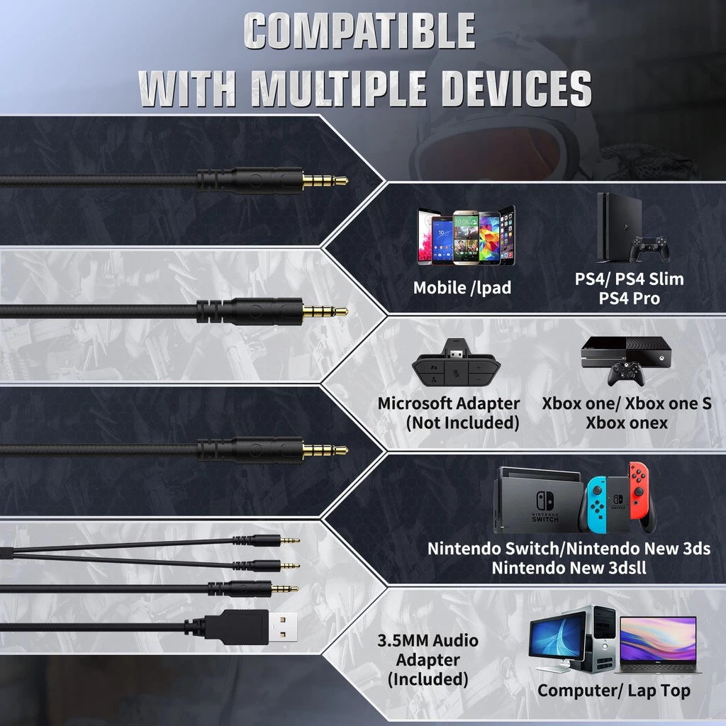 ONIKUMA K20 | 50mm Driver | 7.1 Surround Sound | Adjustable Omnidirectional Noise-Cancelling Microphone | Ergonomic | Wired RGB Gaming Headphones & Headsets (Camouflage Grey)