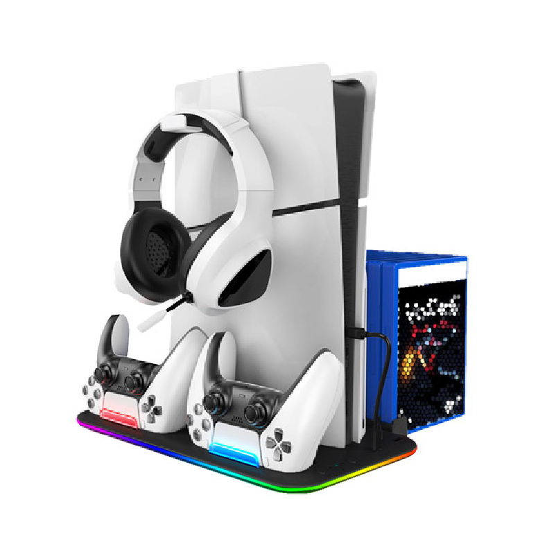 If you needed a multifunctional stand that would saves space and hold all PS5 accessories , the PS5 cooling system is the one for you. This PS5 stand with turbo cooling fan and dual controller charging station to fit any compact desk size, along with headset holder and console compatibility panels. Extra USB port for charging other devices and a removable 15 game slots to save desktop space when you don’t need it.